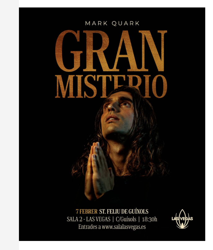 Després d’un llarg camí de reflexió, Mark Quark presenta Gran Misterio, un concert on el hip hop serveix d’altar per explorar la relació entre la música i la fe. Una oportunitat per viure en directe la nuesa d’un artista que es rendeix davant el misteri de Déu, amb l’aparició d’Íñigo Berrio i les seves cançons d’autor. Una invitació a la calma i la interioritat per rebre, amb total amplitud, la presentació del Gran Misterio